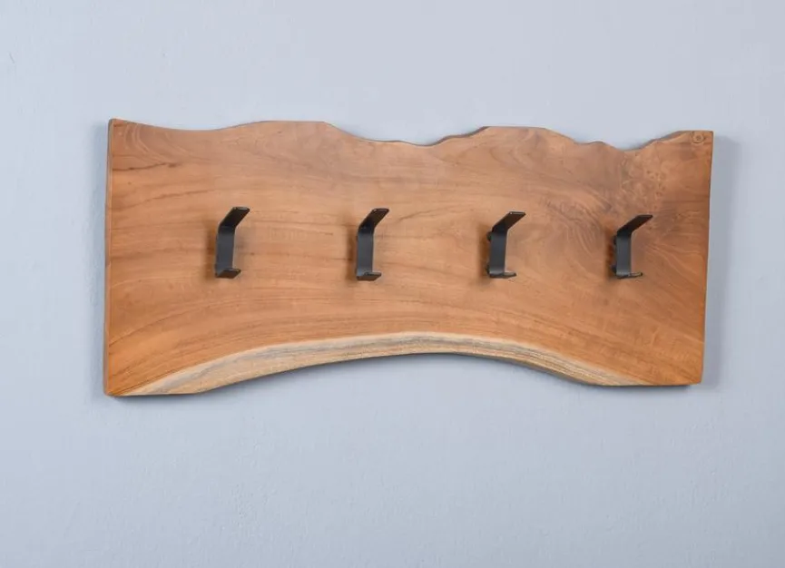 Die Garderobenleiste Alaska aus massivem Holz ist ein hochwertiges Wohnaccessoire, das auch für kleine Räume und Nischen geeignet ist. Jedes naturbetonte Ambiente kann die Garderobenleiste Alaska stilvoll ergänzen. Die edle Holzmaserung der Hakenleiste und von der Natur geformte Kanten machen die edle Hakenleiste zu einem Unikat.
