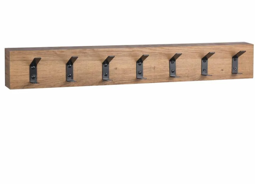 Die Garderobenleiste Lima sieht nicht nur elegant aus, sondern überzeugt auch in funktioneller Hinsicht. Prägende Details für das geschmackvolle Äußere der Hakenleiste sind die Holzoptik und die markanten Metall-Kontraste. Des Weiteren bietet die Garderobenleiste Lima viel Platz zum Aufhängen von Jacken, Mänteln, Taschen und anderen Gegenständen.