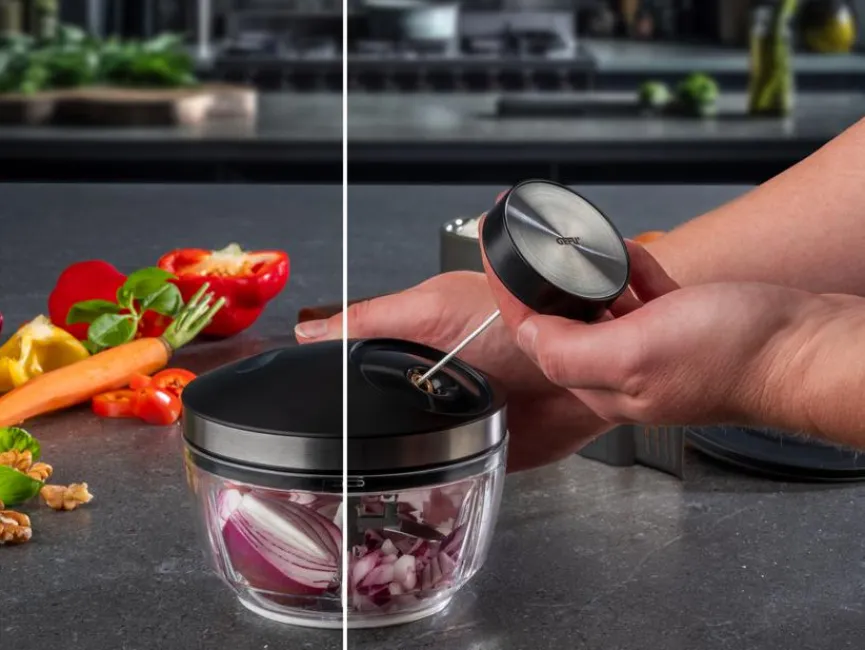 Ob in der Küche oder beim Camping – der Multizerkleinerer Zizo von GEFU bietet Ihnen maximale Effizienz ganz ohne Strom. Dank seines ausgetüftelten Mechanismus zerkleinert, mischt und püriert er ohne großen Kraftaufwand Nüsse, Obst, Gemüse und vieles mehr im Handumdrehen. Mit dem Multizerkleinerer Zizo sparen Sie Zeit und Energie.