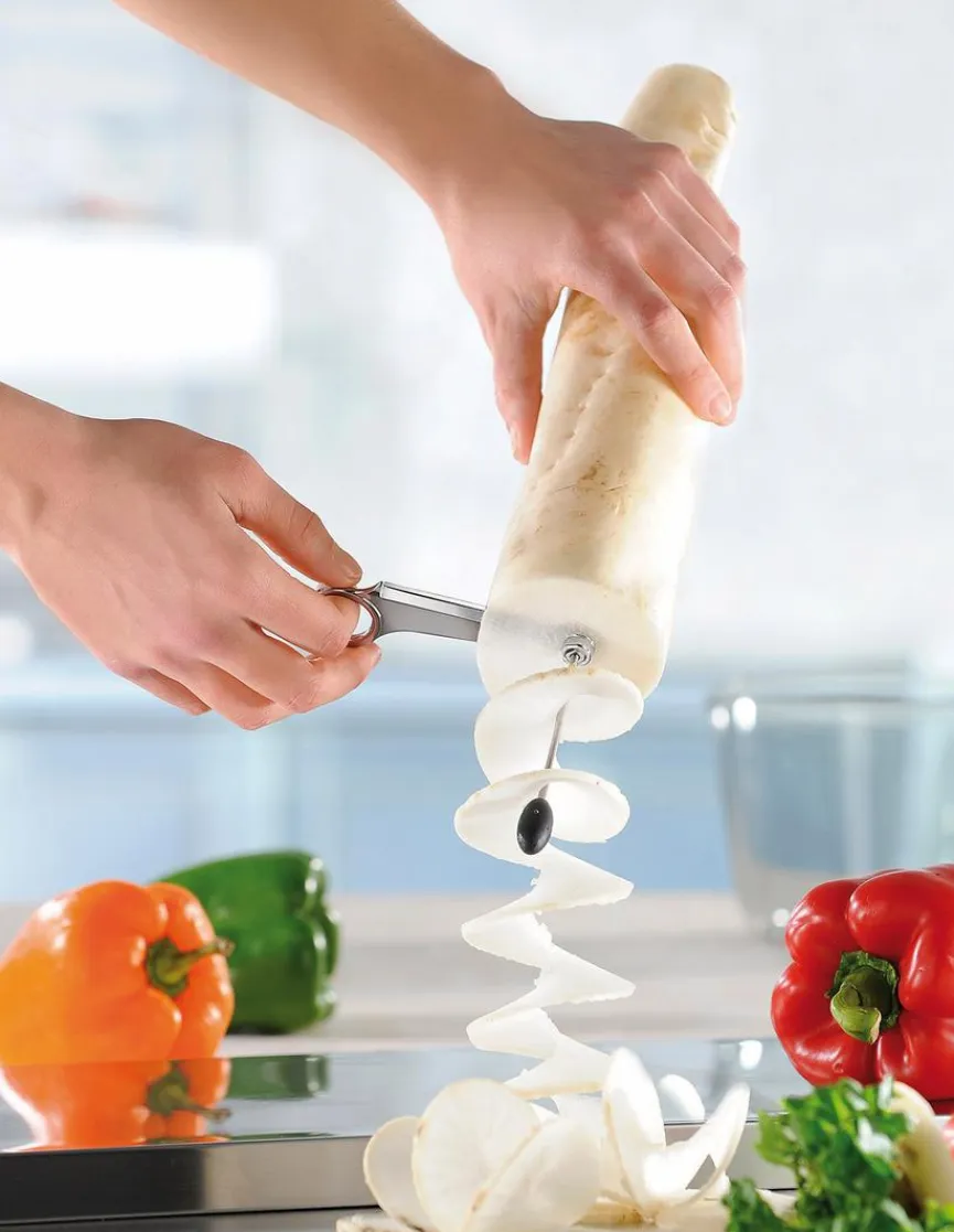 Bei dem Spiralschneider Rettimo von GEFU ist der Name Programm. Mit ihm können Sie nämlich im Handumdrehen Ihren Rettich in appetitliche Spiralen verwandeln und direkt auf dem Teller anrichten. Aber auch für andere feste Gemüsesorten wie Rote Beete oder Zucchini ist das praktische Gadget bestens geeignet. Für was Sie den Spiralschneider Rettimo der Marke GEFU auch verwenden, Sie erhalten stets perfekte Ergebnisse.