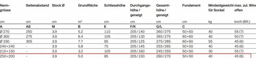 - Mindestgewicht des benötigten Schirmständer ca. 40 kg