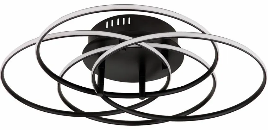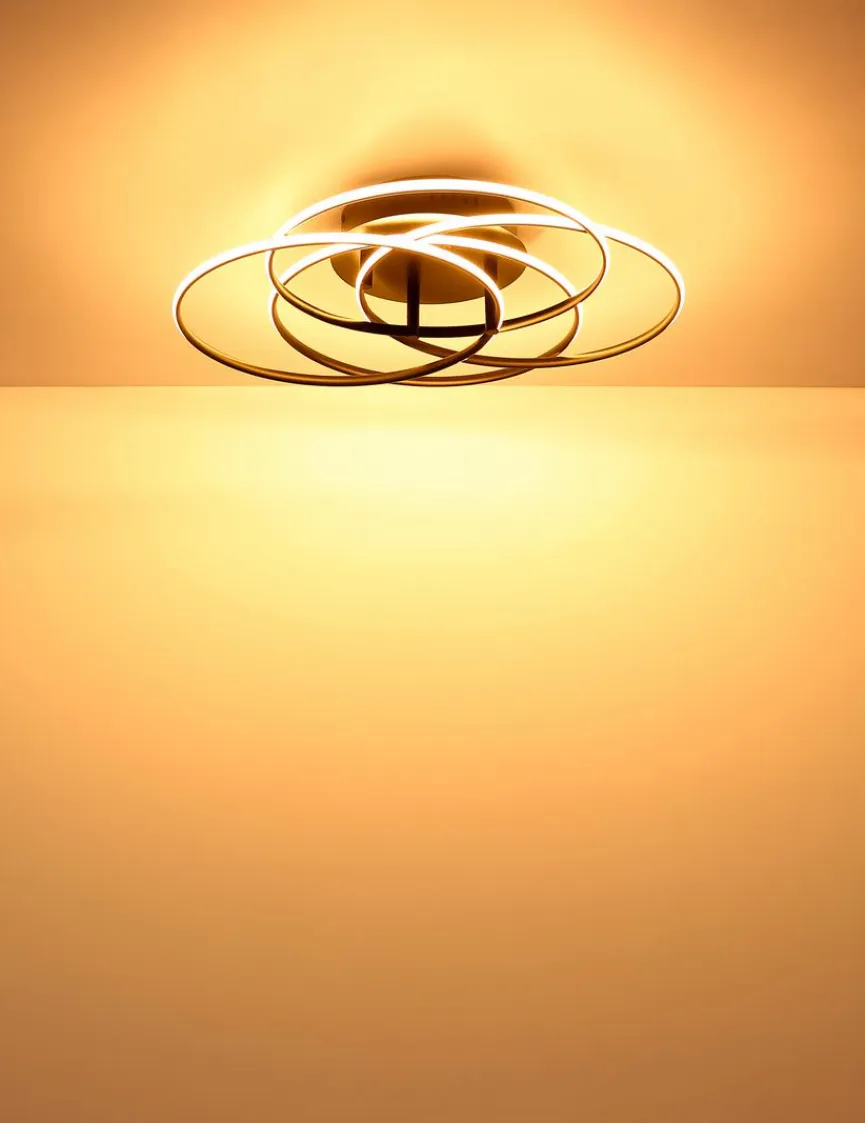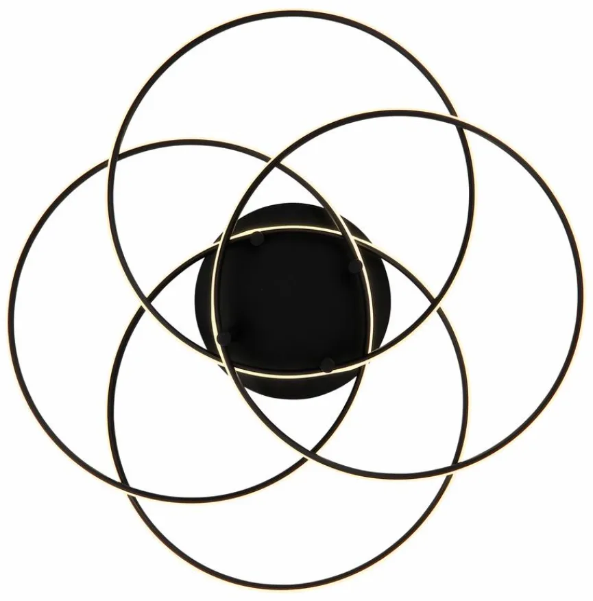Die Globo LED-Deckenleuchte Kombos bezaubert mit vier kreisförmigen Leuchtbändern, die kunstvoll zu einem symmetrischen Ornament zusammengefügt sind. Mit dieser leuchtenden Zirkelblume schmückt die LED-Deckenlampe jeden Raum. Ob im Flur, in der Küche oder im Bad, überall entfaltet die LED-Deckenleuchte Kombos ihre Wirkung. Auch für Schlafzimmer, Kinderzimmer, Wohnzimmer und Büros ist sie eine gute Wahl.