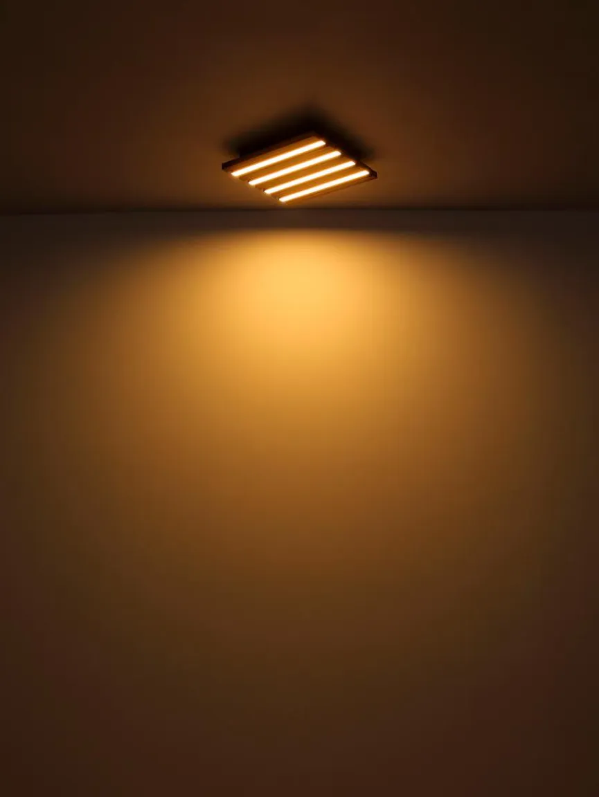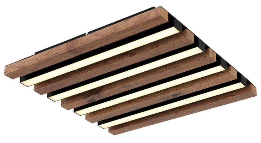Ihr außergewöhnliches Design, das aus einer Kombination schmaler, illuminierter Stäbe und warmer Leisten in Holz-Optik besteht, macht die LED-Deckenleuchte Hayden von Globo zu einem exklusiven Highlight. Der aparte Materialmix lässt diese quadratische LED-Deckenlampe mit vielen Wohnstilen harmonieren und kreiert eine moderne und zugleich angenehme Licht-Atmosphäre. Die LED-Deckenleuchte Hayden beschert Wohn- und Schlafzimmern oder auch Büros ein charmantes Interior-Update.