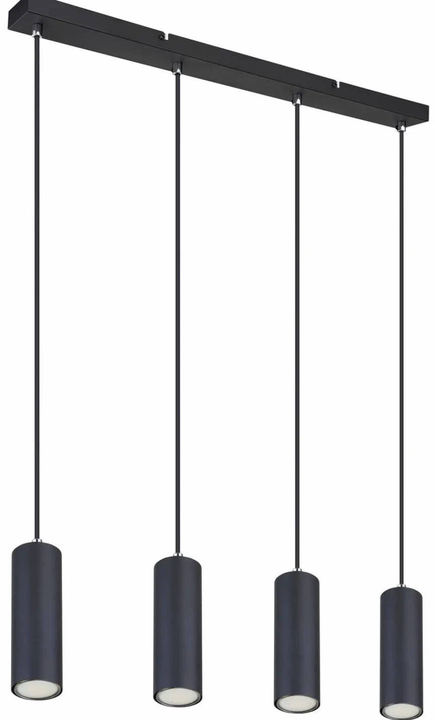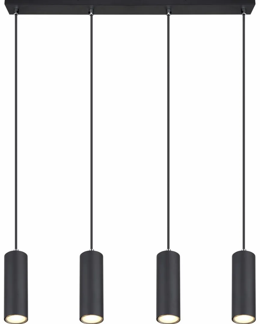 Wenn Sie Ihr Wohn-, Schlaf-, Esszimmer oder Ihre Küche modern eingerichtet haben, eignet sich die zierliche Pendelleuchte Robby der Marke Globo perfekt für Ihr Zuhause. Während der Montage können Sie die feine Pendellampe exakt auf Ihre Wünsche einstellen. Der vier zylinderförmigen Schirme der Pendelleuchte Robby verbergen je eine GU10 Fassung, die an einem Kabel hängt.