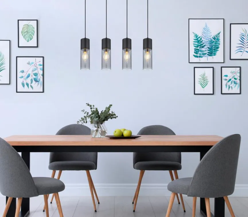 In modern eingerichteten Räumen ist die Pendelleuchte Annika von Globo ein echter Hingucker. Das Licht der Pendellampe scheint durch die vier verdunkelten Schirme aus Glas ganz dezent hindurch und erzeugt eine stimmungsvolle Atmosphäre. Insbesondere über einem Esstisch oder Tresen angebracht, überzeugt die Pendelleuchte Annika mit ihrer Schlichtheit und Eleganz.