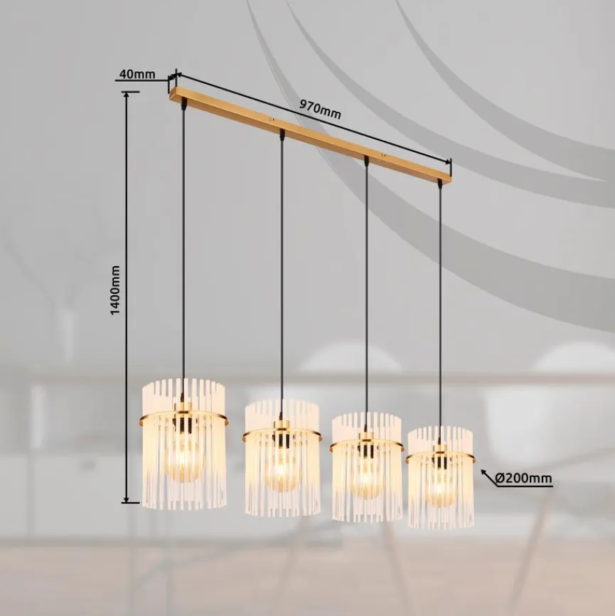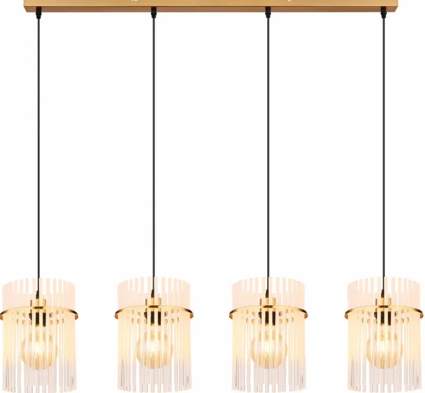 Die Pendelleuchte Gorley von Globo lenkt mit eleganten Schirmen aus Stäbchen die Blicke auf sich. Über einem länglichen Tisch im Esszimmer kann diese Pendellampe zum Beispiel wunderbar zur Geltung kommen. Als Ergänzung zu einem anderen Objekt aus dieser Kollektion ist die Pendelleuchte Gorley natürlich ebenfalls eine besonders schöne Option.