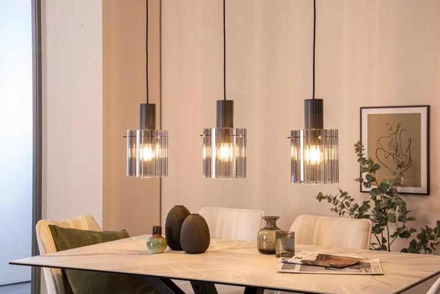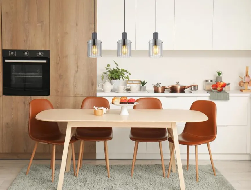 Die Pendelleuchte Tiril von Globo überzeugt durch ihr klassisches Design, das sich harmonisch in unterschiedliche Wohnkonzepte einfügt. Zum Blickfang wird diese Pendellampe durch drei ansprechende Lampenschirme aus Rauchglas. Damit spendet die Pendelleuchte Tiril gedämpftes, warmes Licht, das für ein gemütliches Ambiente am Esstisch sorgt und jeden Gast zum Verweilen einlädt.