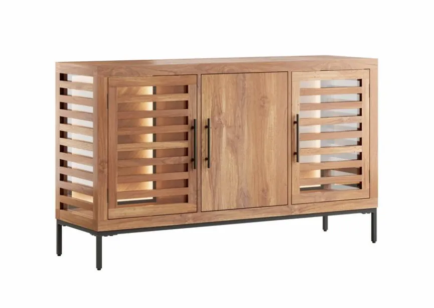 Das Sideboard Showcase aus dem Hause Gutmann Factory wirkt gemütlich und raffiniert. Lamellen an den Seiten und an den äußeren Türfronten bringen eine spannende Transparenz mit sich. Kombinieren Sie die Kommode mit weiteren Typen aus diesem Programm! Aber auch zu diversen anderen geradlinig gezeichneten Möbeln im modernen Stil passt das Sideboard Showcase wunderbar.