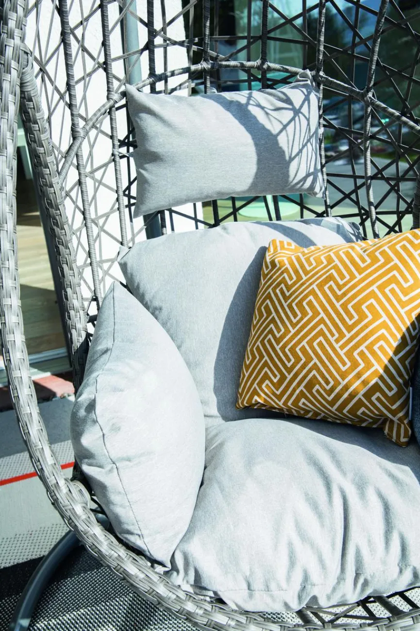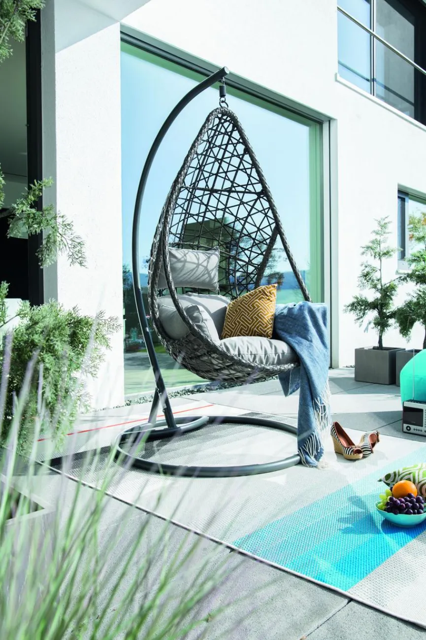 Mit dem gemütlichen Hängesessel Slow können herrliche Sonnenstunden auf der eigenen Terrasse noch entspannter genossen werden. Hierfür sorgen vor allem die weichen Rücken- und Sitzkissen des Hängestuhls, welche dank ihrer wasserabweisenden Eigenschaften jedem Wetter standhalten. Durch das robuste Stahlgestell ist sichergestellt, dass der Hängesessel Slow fest auf dem Untergrund steht und auch bei schaukelnden Bewegungen nicht die Balance verliert.