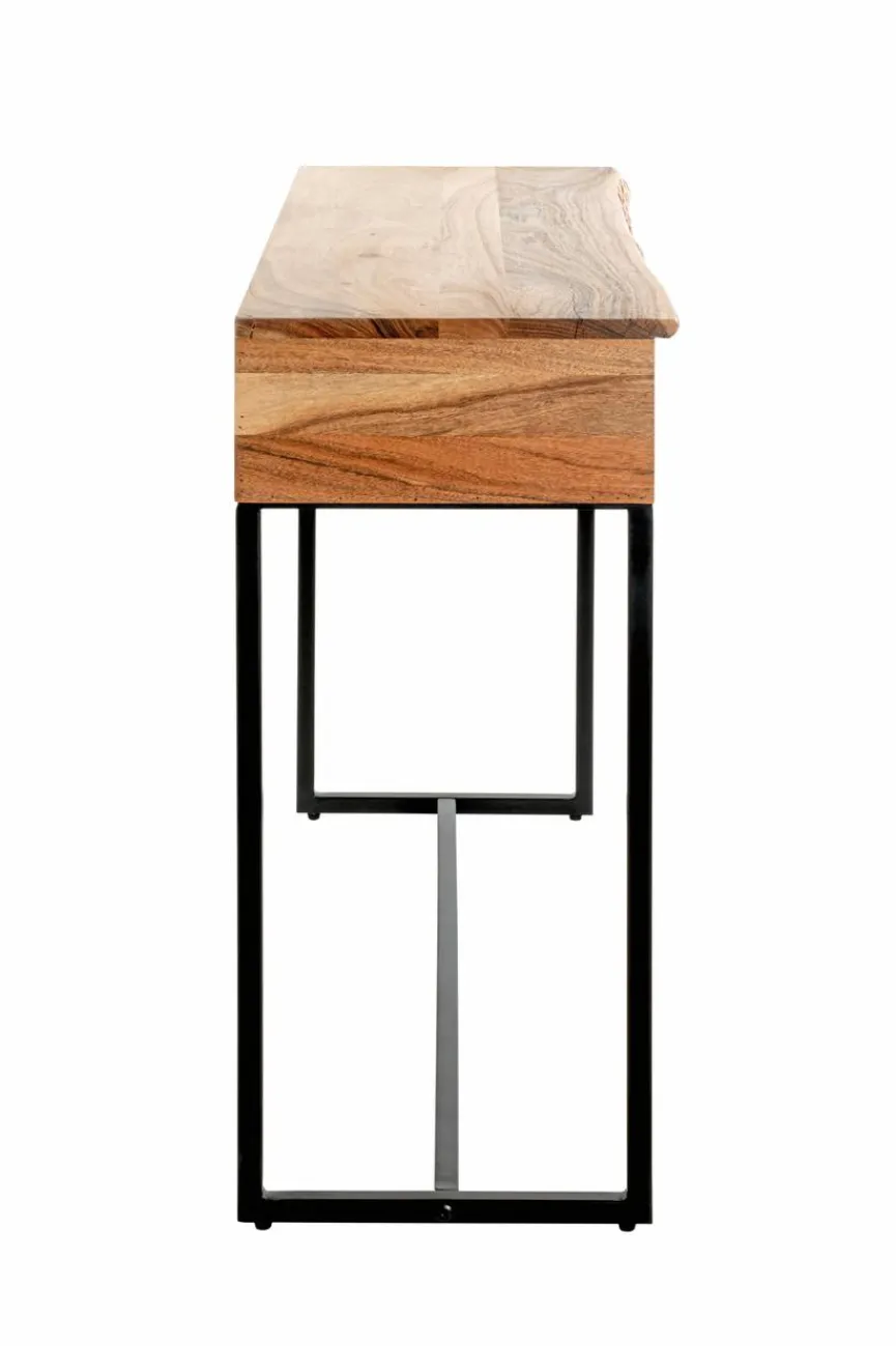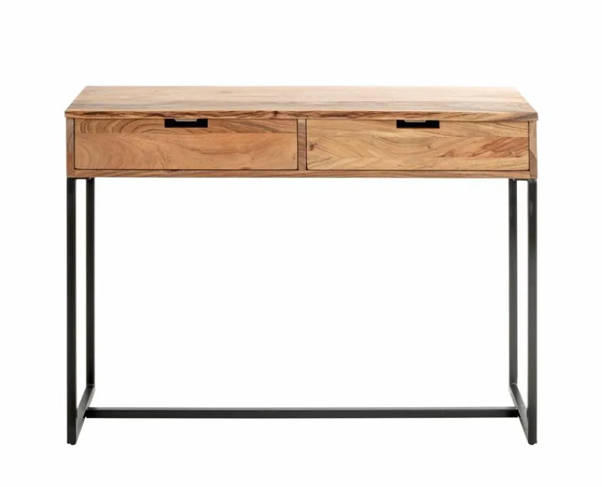 Der aparte Konsolentisch Rivera von Haku vereint die klare Linienführung modernen Designs mit warmen Attributen des angesagten Nature-Looks. Egal, ob Sie diesen eleganten Beistelltisch im Flur aufstellen oder er Ihr Ambiente im Wohn- oder Arbeitszimmer vervollständigt, seine beiden Schubladen bieten begehrten Stauraum. Der charmante Konsolentisch Rivera punktet mit einer natürlich gestalteten Tischplatte, auf der Sie sowohl nützliche Dinge platzieren als auch Designobjekte hübsch dekorieren können.
