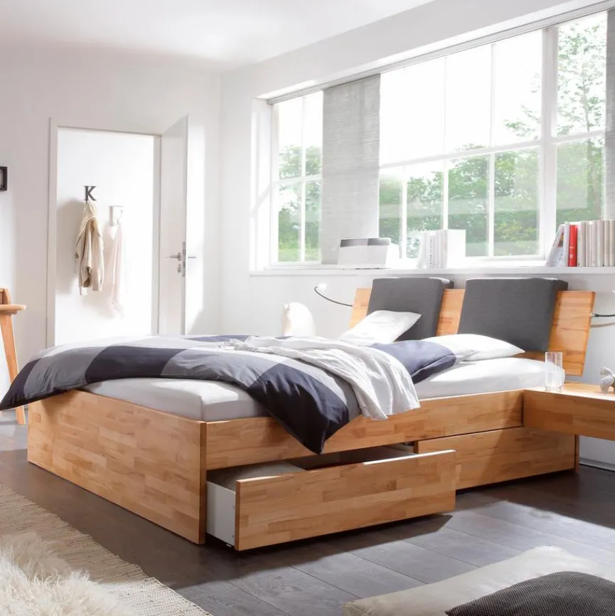 Ein erholsamer Schlaf ist unerlässlich, wenn Sie ausgeruht und fit in den Tag starten möchten. Mit dem Massivholzbett Spazio von HASENA sind beste Voraussetzungen für eine komfortable Schlafstätte geschaffen. Dank Bettauszügen ist auch für praktischen Stauraum gesorgt. Das Massivholzbett Spazio der Marke HASENA präsentiert sich in der Ausführung Kernbuche natur.