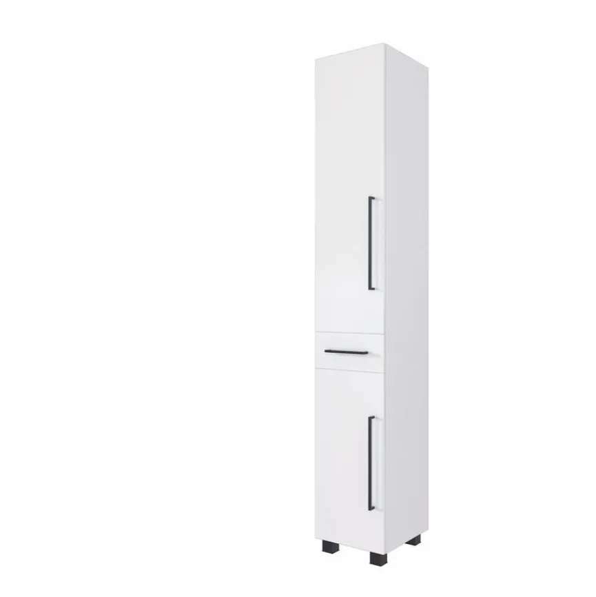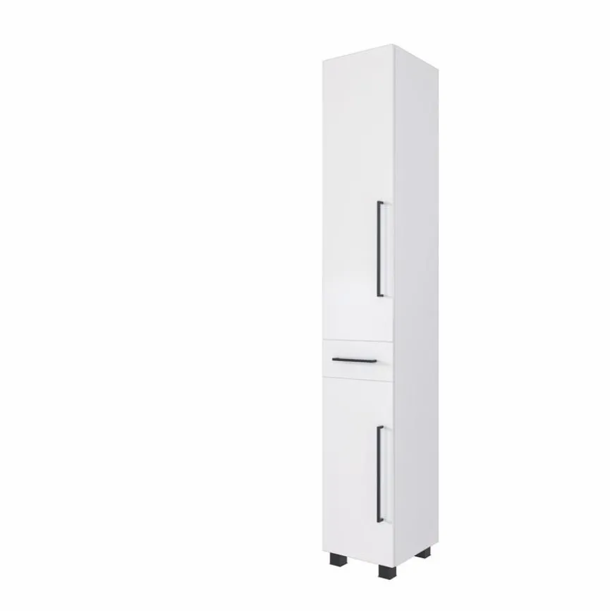 Der Hochschrank Chur wartet mit einem modernen, Sachlichkeit verkörpernden Look auf. Er hat zwei Türen sowie einen Schubkasten mit Softclose-Funktion. Schlank und lang geformte, dunkel abgesetzte Bügelgriffe betonen den geradlinigen Charme, mit dem der Hochschrank Chur brilliert, auf eine optisch sehr reizvolle Art und Weise.