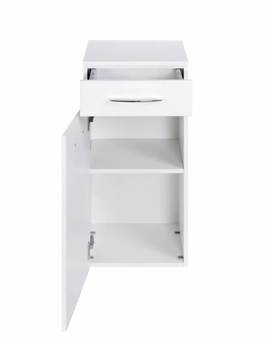 Wer zeitgemäße Interieurdesigns liebt, kommt am Unterschrank Florida nicht vorbei vor allem dann, wenn ein schlichtes Möbel gesucht wird, das geradlinig gezeichnet ist und jede Menge Platz bietet. Der Unterschrank Florida ist sowohl mit einer Drehtür als auch mit einer Schublade mit Softclose-Funktion versehen.