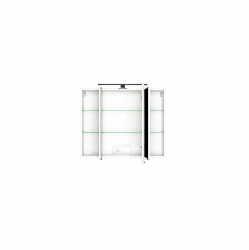 Der Spiegelschrank Chur eignet sich hervorragend zur Unterbringung diverser Gegenstände und gleichzeitig auch als Lichtquelle. Hinter den drei Türen des Schrankes befinden sich sechs Glasböden, auf denen sich zahlreiche Utensilien übersichtlich anordnen lassen. Zusätzlich ist der Spiegelschrank Chur mit einer LED-Aufbauleuchte der Energieeffizienzklasse A++ – A ausgestattet, die bei einer Leistung von 9,6 Watt eine Lichtstärke von 700 Lumen liefert.