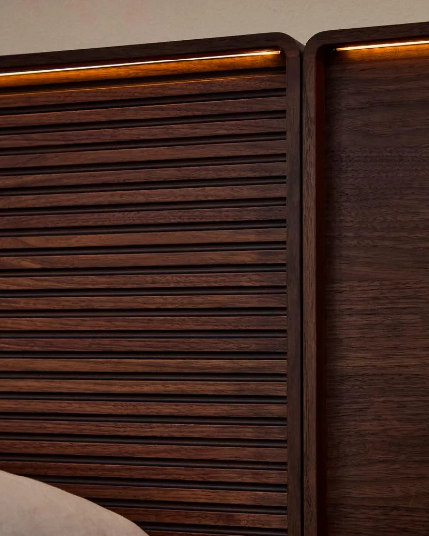 - Aus Holzwerkstoff (MDF) mit Nussbaumfurnier in dunkel