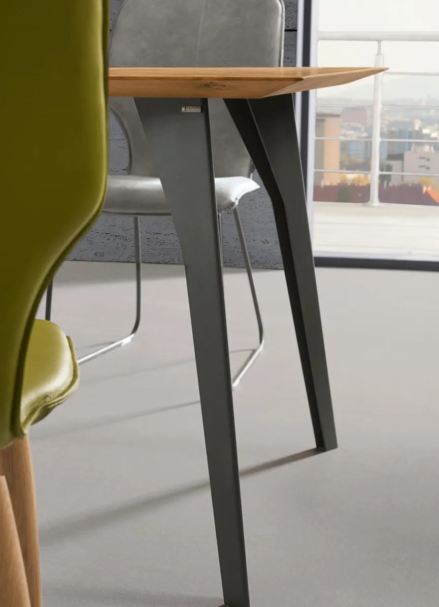 Der Esstisch Nevio V2009 200×100 cm aus dem Hause Musterring vereint ein attraktives Design und eine hohe Funktionalität. Geprägt wird die Optik des Esszimmertisches von der edlen Massivholzplatte und dem markanten Metallgestell. Darüber hinaus überzeugt der Esstisch Nevio V2009 200×100 cm durch die von Musterring gewohnt hohe Verarbeitungsqualität.