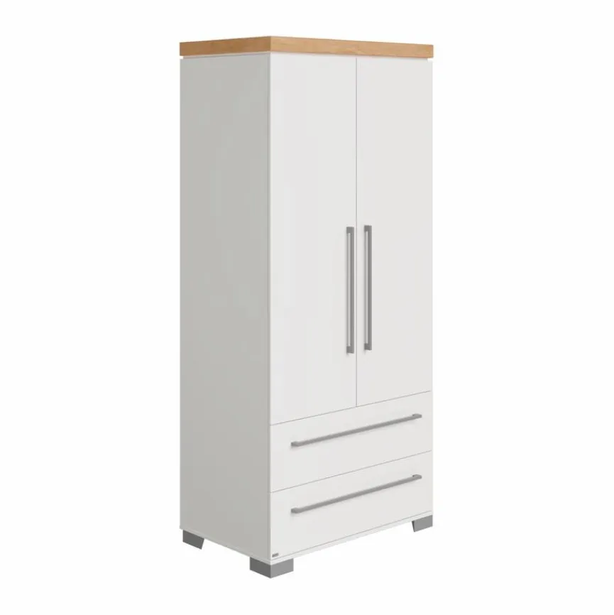 - Mit 2 Türen, 2 Schubkästen, 1 Mittelwand, 4 Einlegeböden und 1 Kleiderstange