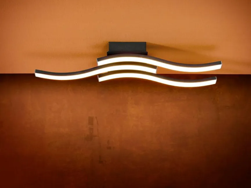 Die LED-Deckenleuchte Route von Reality Leuchten bietet mit ihren drei Flammen eine hervorragende Ausleuchtung des Zimmers. Schnell haben Sie die LED-Deckenlampe montiert und zum Einsatz gebracht. Insbesondere dank des wellengleichen Designs sorgt die LED-Deckenleuchte Route der Marke Reality Leuchten für einen ganz besonderen Wohnakzent.