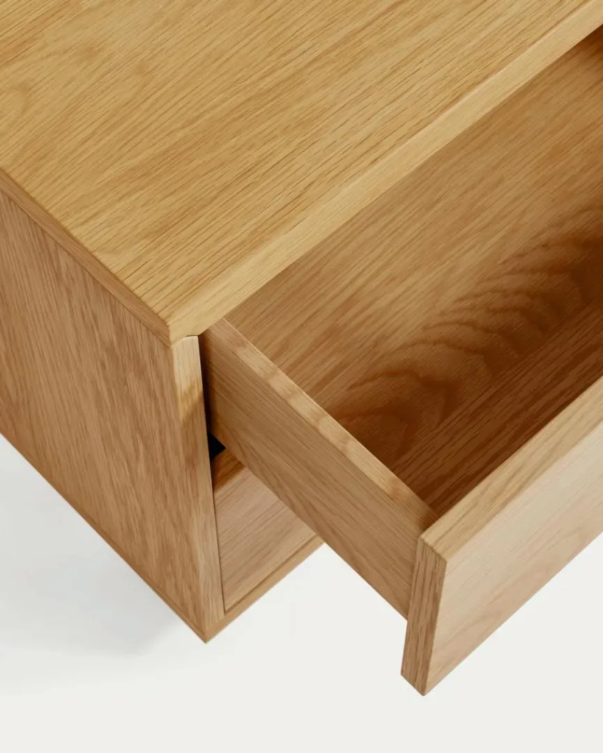 Der Nachttisch Abilen der Marke Kave Home überzeugt mit seinem reduzierten Design in Holzoptik, wodurch er problemlos zu unterschiedlichen Wohnkonzepten passt. Hinter zwei grifflosen Schubkästen bietet Ihnen die Nachtkonsole Platz für Nützliches sowie Persönliches und sorgt dabei für mehr Ordnung. Besonders harmonisch wirkt der Nachttisch Abilen in Kombination mit schnörkellosen Möbelstücken in Naturoptik.