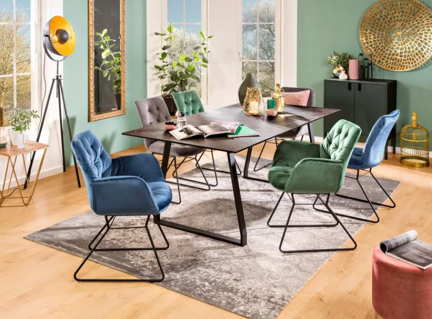 Der Stuhl Varese ist ein ideales Stilelement, um eine extravagante Wohnlandschaft geschmackvoll zu gestalten. Sowohl die weiche Knopfpolsterung als auch der strapazierfähige Bezug machen das Möbel äußerst komfortabel und robust. Zudem verleiht das stabile Gestell aus Rundrohr dem Stuhl Varese die nötige Stabilität sowie eine gewisse Flexibilität.