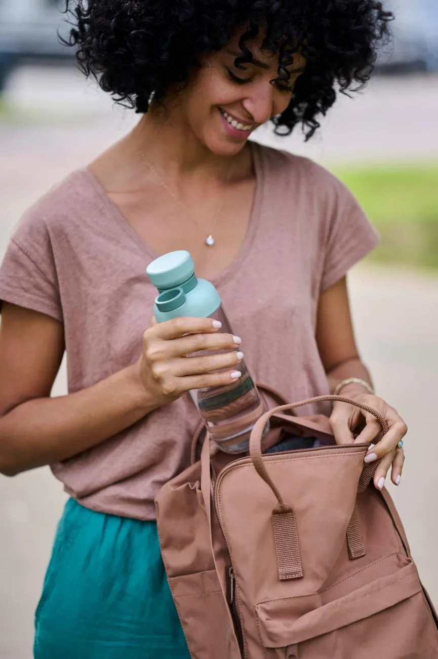 Wer sich außer Haus mit Wasser, Saft und Co. versorgen möchte und dafür ein auslaufsicheres Behältnis benötigt, trifft mit der Trinkflasche Vita 700 ml von Mepal eine ausgezeichnete Wahl. Dank einer praktischen Trageschlaufe am Deckel kann das BPA-freie Gefäß auch außerhalb einer Tasche problemlos transportiert werden. Die Trinkflasche Vita 700 ml weist eine kleine sowie eine große Öffnung auf, sodass sie sich leicht befüllen lässt.