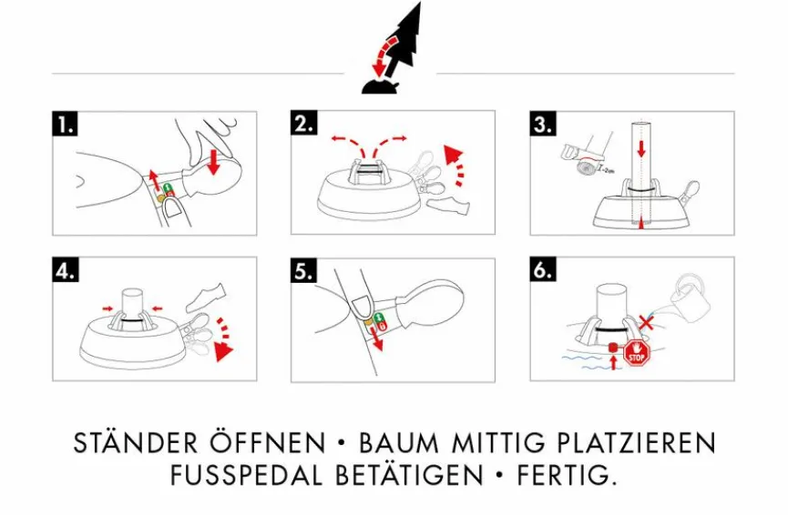 - Mit Rundum-Einseil-Technik für Stammdurchmesser bis 11 cm; dadurch sicherer und kerzengerader Stand des Baumes; 3,5 Liter Wassertank
