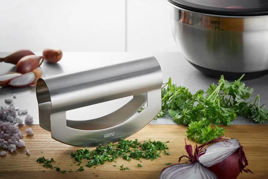 Wenn Sie ein begeisterter Hobbykoch sind, wird Sie das Wiegemesser Viavo aus dem Hause GEFU sofort in seinen Bann ziehen. Können Sie doch mit diesem Spitzenprodukt der Küchenhelfer wie ein Profi Knoblauch, Kräuter, Salat und Zwiebeln schneiden. Ermöglicht wird dies beim Wiegemesser Viavo der Marke GEFU durch die extrem scharfe Doppelklinge und die ergonomische Formgebung.