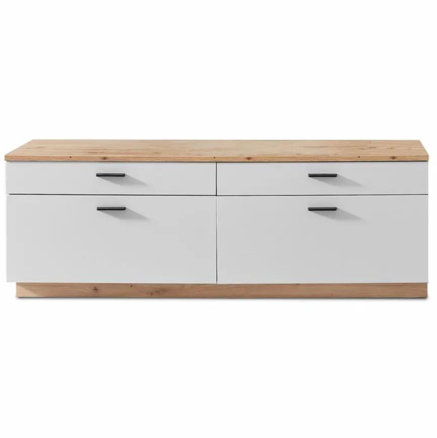 - Aus Holzwerkstoff (Spanplatte) mit kratzfester Melaminharzfolie in Modern White, Absetzung aus Holzwerkstoff (Spanplatte) mit kratzfester Melaminharzfolie in Eiche Artisan