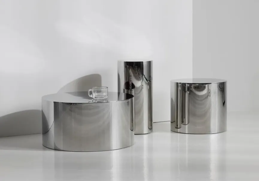 Mit einem minimalistischen Designansatz gefertigt, vereint der Tin Drum Tisch eine klare, zeitlose Silhouette mit vielseitiger Ästhetik. Die durchgehenden, fließenden Linien seiner runden Form strahlen Ruhe aus, während die hochglänzende Oberfläche eine markant moderne Note hinzufügt. Seine reflektierende Oberfläche hebt die Umgebung hervor und macht ihn zu einem vielseitigen Möbelstück, das sich sowohl in minimalistische als auch in ausdrucksstarke Innenräume einfügt. Erhältlich in drei Größen, kombiniert der Tin Drum Tisch modernen Minimalismus mit langlebiger Metallkonstruktion – ideal als Couchtisch, Beistelltisch oder Akzenttisch.