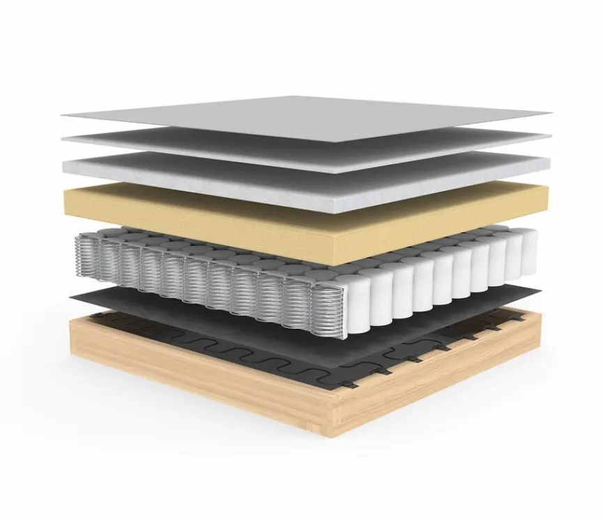 - Polsterung aus Polyätherschaum und Fiberfill (No-zag Spring), Unterfederung durch dauerelastische Stahlwellenfedern