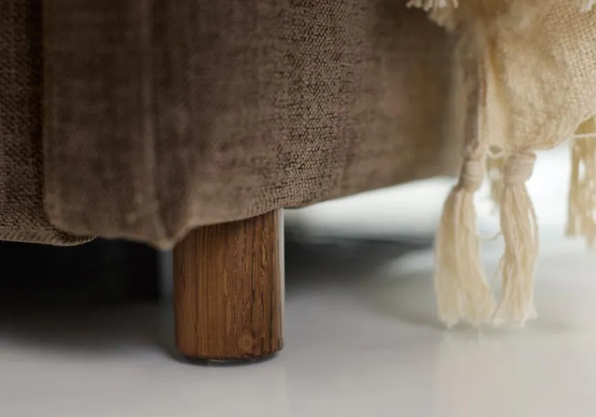 - Bezug aus Stoff (esina) in cedar brown (411), Füße aus massivem Eichenholz dunkel lackiert
