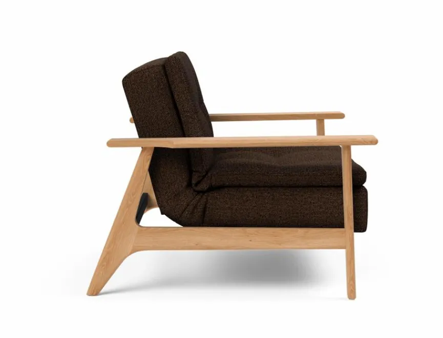 - Bezug aus Stoff (taura) in chocco (358), Füße und Armlehnen aus massivem Eichenholz lackiert