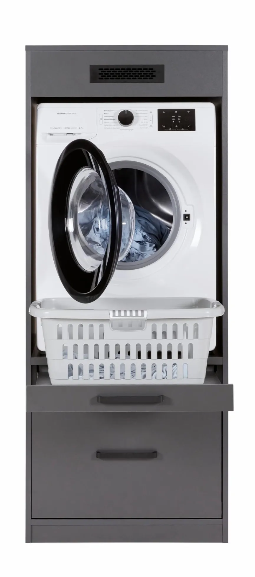Der moderne Geräteschrank Galleria von Inter Link lässt keine Wünsche offen, was Design und Komfort anbelangt. Er überzeugt mit einer durchdachten Aufteilung und vielseitigen Einsatzmöglichkeiten. So ist die Waschmaschine perfekt untergebracht, und Waschmittel sowie Zubehör sind übersichtlich und griffbereit verstaut. Ob im Keller oder in der Waschküche, der Geräteschrank Galleria ist die ideale Lösung für alle, die Ordnung und Übersicht schätzen.