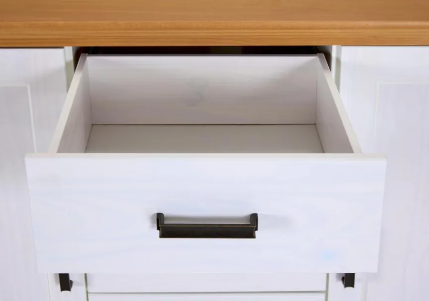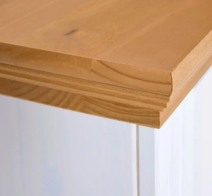 Die Kiefer bietet ein helles und leichtes Holz. Möbel aus diesem Naturmaterial sind meist etwas günstiger und dennoch sehr langlebig. Ein Anstrich mit weißem Lack schont die Oberflächen und zaubert eine freundliche Optik.