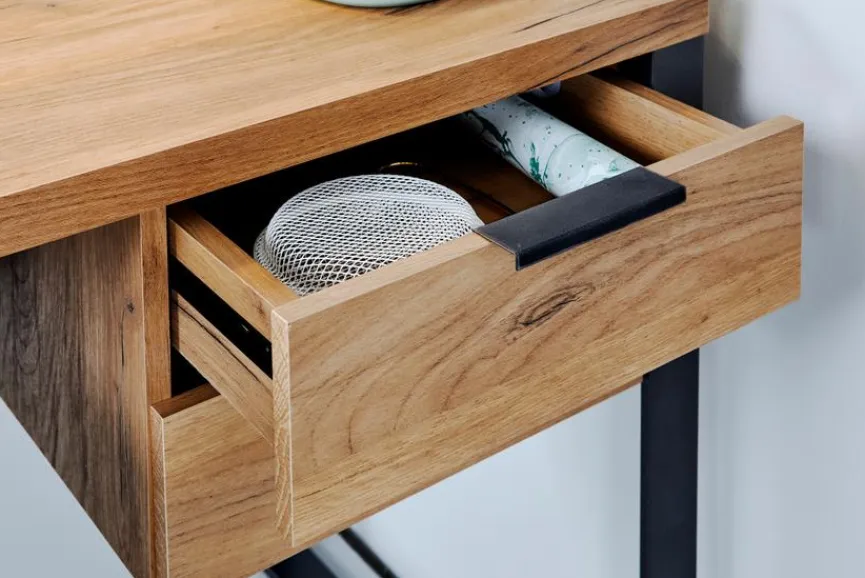 Der Schreibtisch Loop D 150 des Herstellers Jahnke überzeugt sowohl in optischer als auch funktionaler Hinsicht. Besonders auffällig an dem Schreibtisch von Jahnke ist der attraktive Holzlook, der mittels 3D-Druck noch verstärkt wurde. Außerdem verfügt der Schreibtisch Loop D 150 über drei Schubkästen, die viel Stauraum für gerade nicht benötigte Büroutensilien bieten.