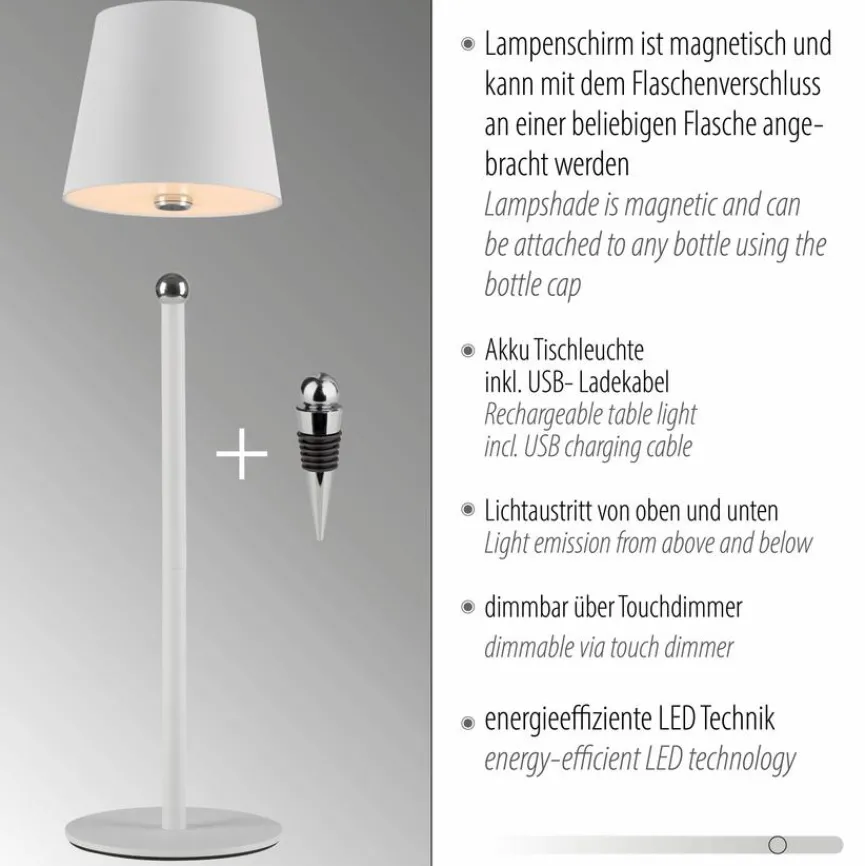 - Mit Tastdimmer an der Leuchte zum Dimmen