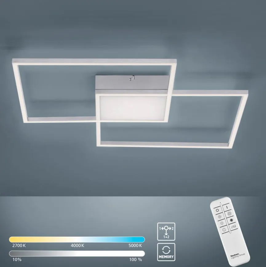 Rechteckig gezeichnete Elemente ohne Schnörkel machen die Leuchten Direkt LED-Deckenleuchte Asmin zu einem Blickfang, der gut zu vielen angesagten Möbelstilen im minimalistischen Stil passt. Auch im Hinblick auf die Funktionalität kann diese moderne LED-Deckenlampe aus dem Hause Leuchten Direkt überzeugen. So bietet Ihnen die LED-Deckenleuchte Asmin zum Beispiel eine komfortable Fernbedienung zum Dimmen.