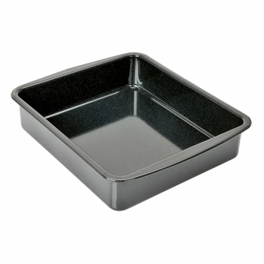 - Aus Blech, antihaftbeschichtet und emailiert