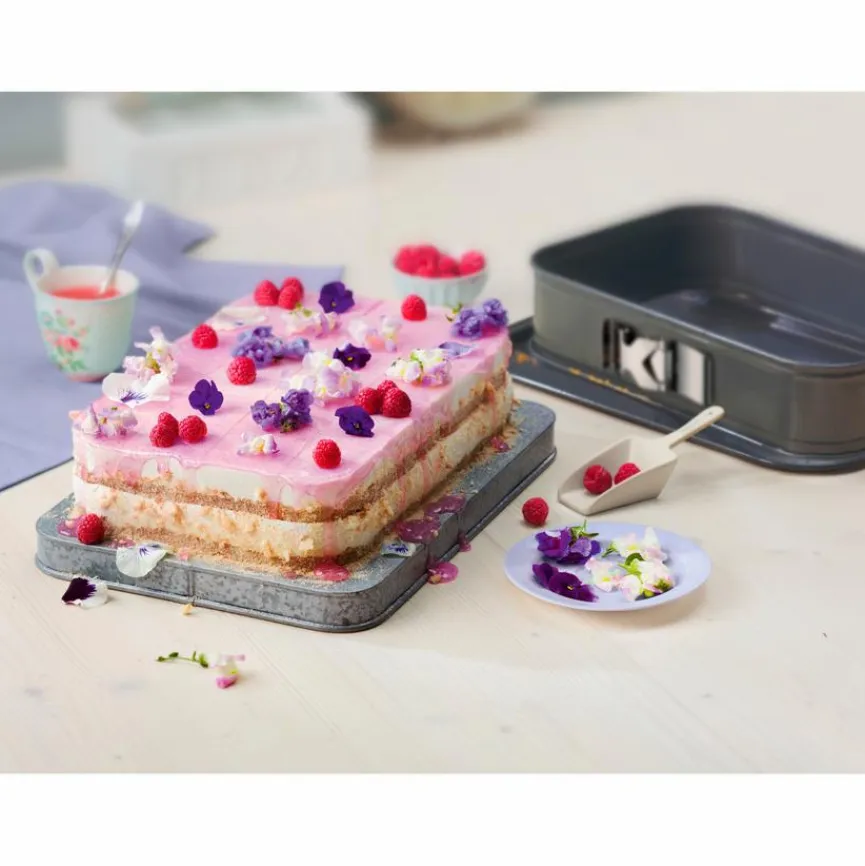 Mit der Springform La Forme Plus von Kaiser macht Backen richtig Spaß, denn diese Backform sorgt für eine gleichmäßige Bräunung. Zudem lässt sich der fertige Kuchen spielend leicht aus der Form lösen. Entfernen Sie mit nur einem Griff den Rand und servieren Sie Ihr Werk direkt auf dem glasharten und somit schnittfesten Boden der Springform La Forme Plus von Kaiser!