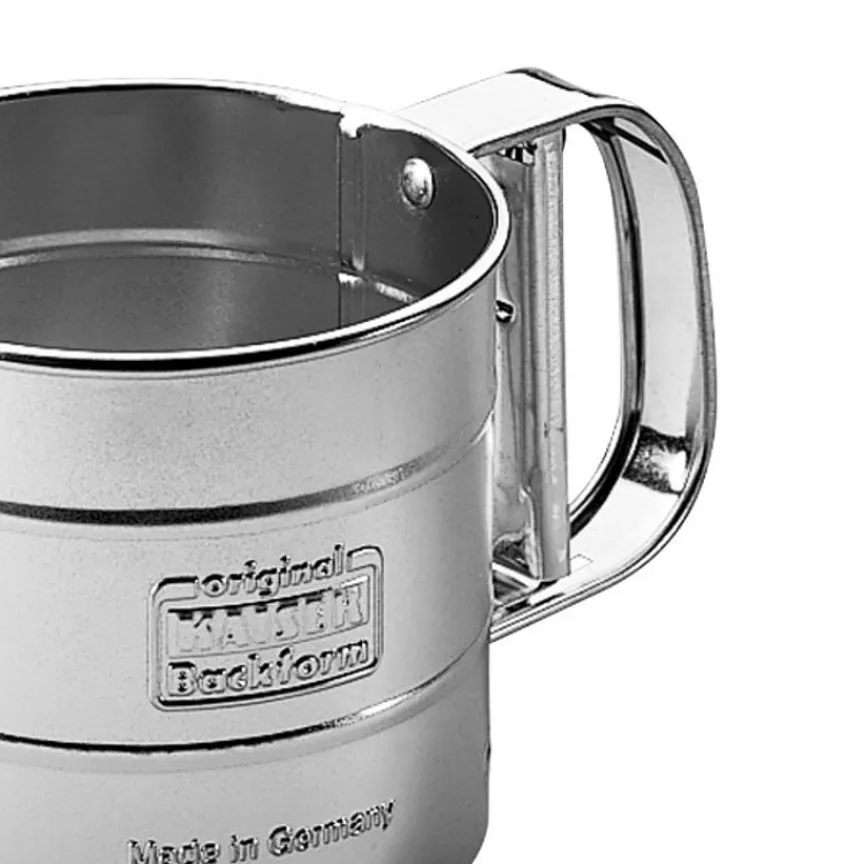 Mit diesem Mehlsieb 350 ml von Kaiser lassen sich beispielsweise Mehl, Puderzucker und Kakao zum Backen, Kochen und Garnieren schnell und einfach mit einer Hand fein sieben. Es sorgt garantiert für ein klümpchenfreies Ergebnis. Mit gesiebtem Mehl wird Gebäck wie ein Biskuitteig schön locker und luftig. Das Kaiser Mehlsieb 350 ml ist auch der perfekte Backhelfer, um Kuchen und Torten gleichmäßig zu bestäuben.