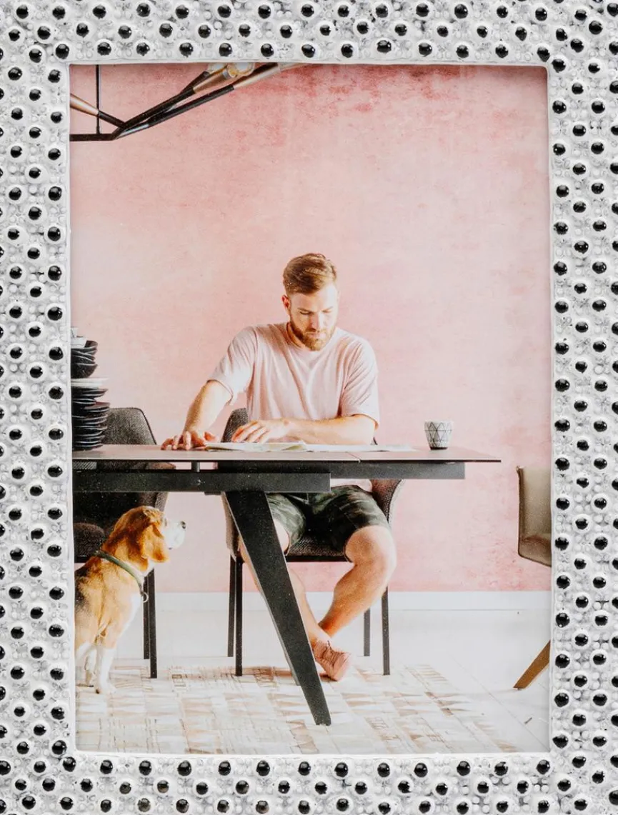 Um Ihre Fotos, Skizzen, Collagen oder Zeichnungen innovativ in Szene zu setzen, ist der außergewöhnliche Bilderrahmen Lina 15,8×20,7 cm von KARE DESIGN genau richtig. Sein Rahmen besteht aus erhabenen Punkten, die durch ihre Reliefstruktur und ihren Kontrastreichtum wirken, und zudem ein angenehmes taktiles Gefühl erzeugen. Egal, ob Sie den Bilderrahmen Lina 15,8×20,7 cm hinstellen oder aufhängen, er ist ein faszinierendes Stil-Statement.