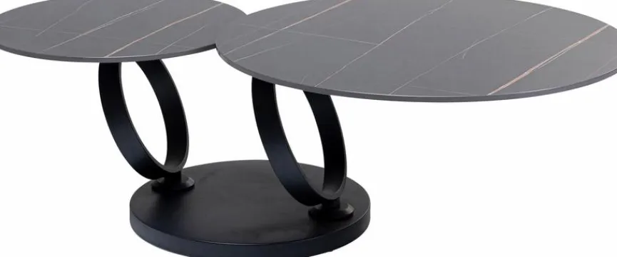 Mit dem Couchtisch Beverly 85504 von KARE DESIGN ziehen Sie garantiert die Blicke Ihrer Besucher an, denn die originelle Konstruktion setzt ganz selbstverständlich einen Akzent in jedem Zuhause. Dieser Wohnzimmertisch bietet Ihnen mit seinen überlappenden Tischplatten viel Platz und strahlt dabei eine gewisse Eleganz aus. Kombinieren Sie den Couchtisch Beverly 85504 am besten zu hochwertigen und stilbewussten Einrichtungskonzepten für ein stimmiges Ambiente.