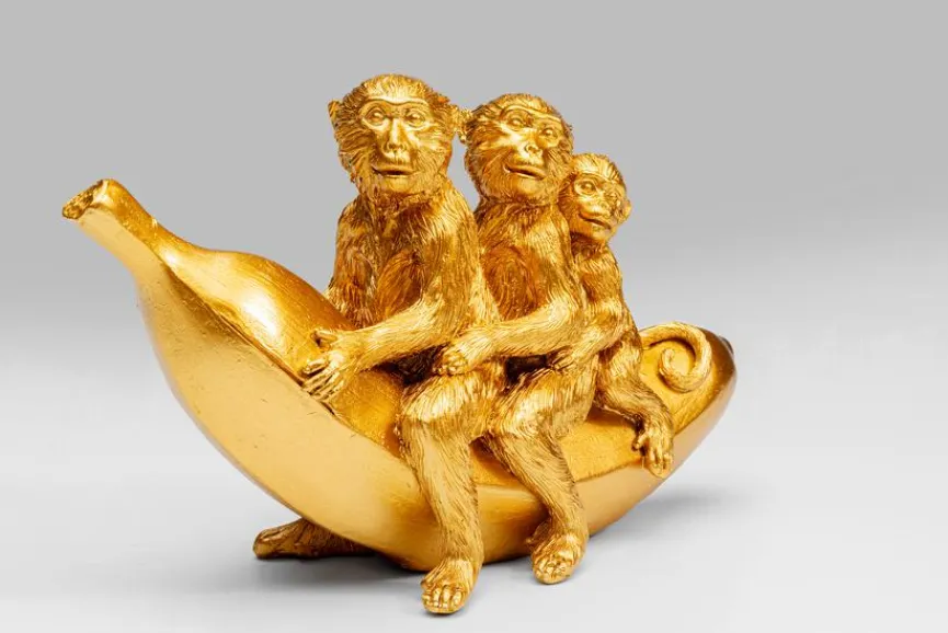Das Deko-Objekt Banana Ride ist ein herrliches Wohnaccessoire für Menschen, die gern ausgefallenen Stil mit Humor verbinden. Die als Statue dargestellte Affenfamilie hat sichtlich Spaß auf ihrer Bananenbootfahrt und strahlt diese Freude auch ins Ambiente ab. Ob auf einem Sideboard, auf einem Regal oder in einer Vitrine – das originelle Deko-Objekt Banana Ride bringt seine Betrachter überall zum Schmunzeln.