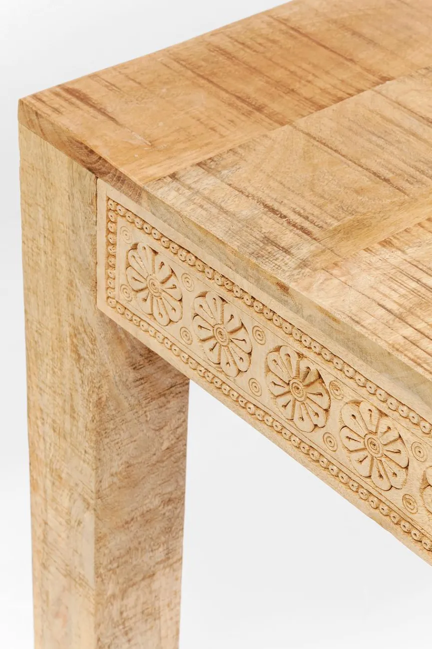 Das ursprünglich aus Indien stammende Mangoholz wurde vor einigen Jahren für die Möbelherstellung entdeckt. Es besticht mit einer hellen, natürlich braunen Farbe. Mit der frischen, klaren Optik passt es perfekt zum angesagten Massivholztrend.