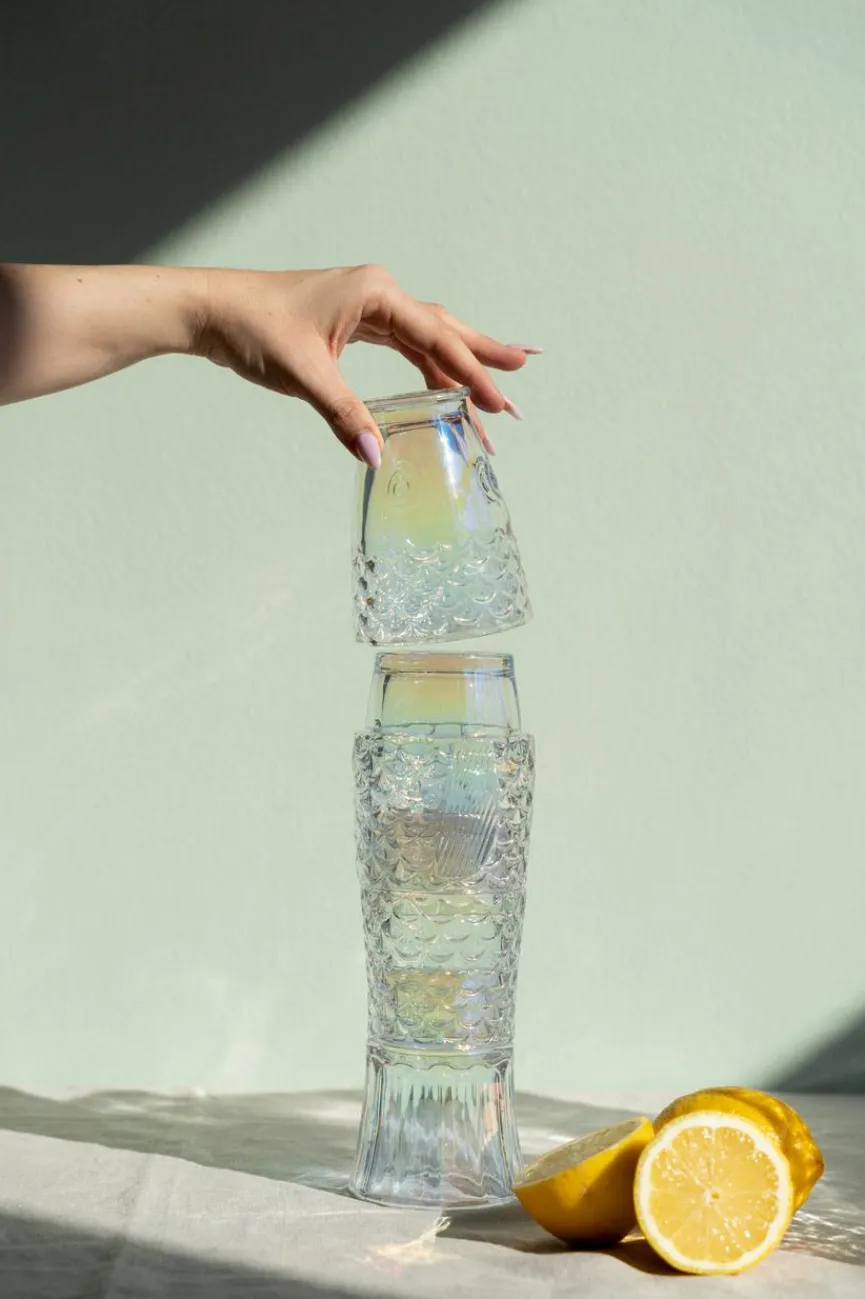 Das Gläserset Pesce 4tlg. von KARE DESIGN ist außergewöhnlich gestaltet – jedes Glas hat die Form eines Fisches. Jedes Detail, vom gleichmäßigen Schuppenkleid bis zur zarten Flossenstruktur, ist naturgetreu nachgebildet. Servieren Sie in dem Gläserset Pesce 4tlg. ausgefallene Drinks, selbstgemachte Limonaden oder einen leckeren Saft. In diesen Gläsern wird jedes Getränk zum Blickfang.