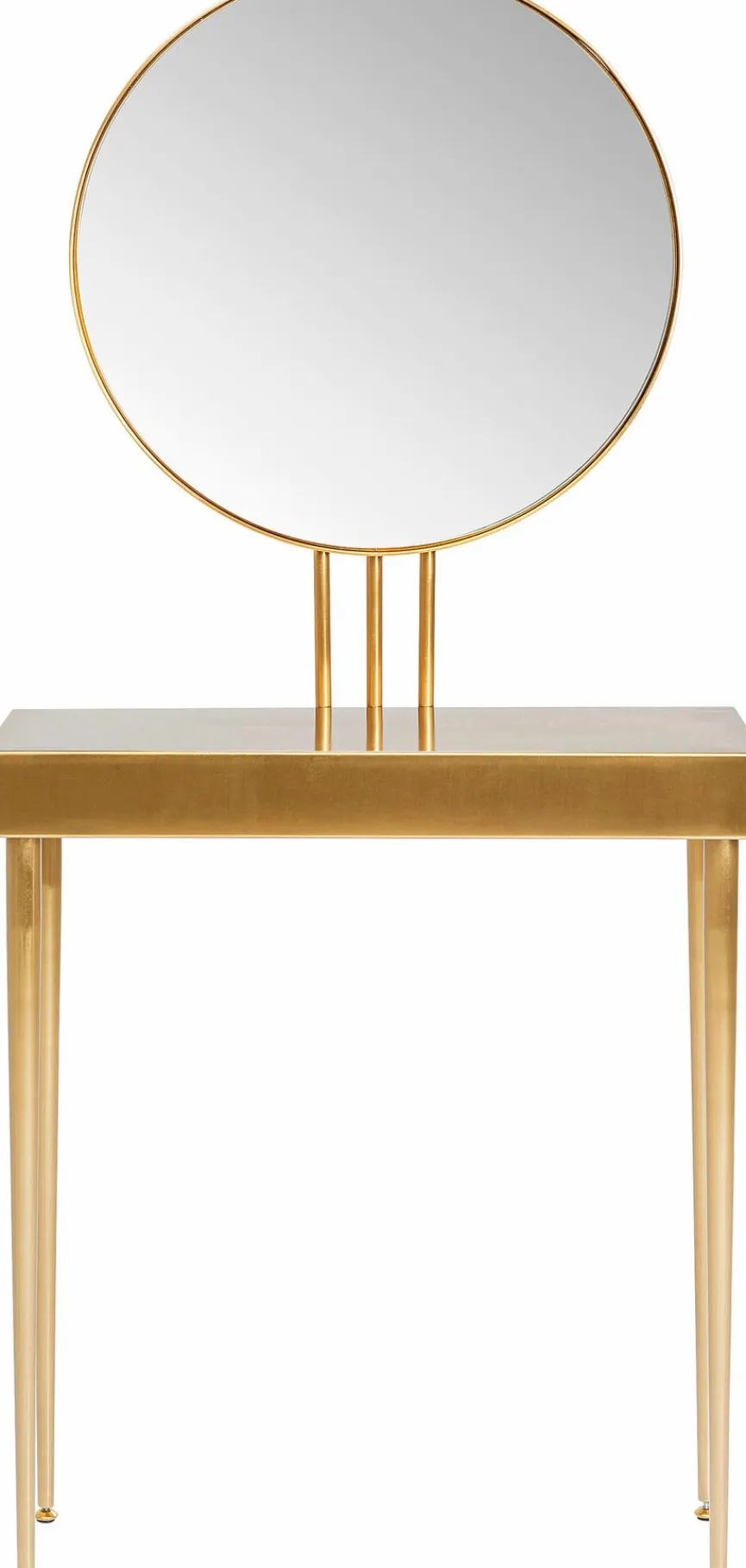 Die Konsole Art 84839 der Marke KARE zieht mit ihrer luxuriösen Optik die Blicke auf sich. Sie ist aus glänzendem und gebürstetem Stahl gefertigt und begeistert durch eine geschmackvolle Formensprache. Praktisch ist bei der Konsole Art 84839 von KARE der große Spiegel, dank dem Sie sich beim Schminken oder Frisieren immer im Blick haben.