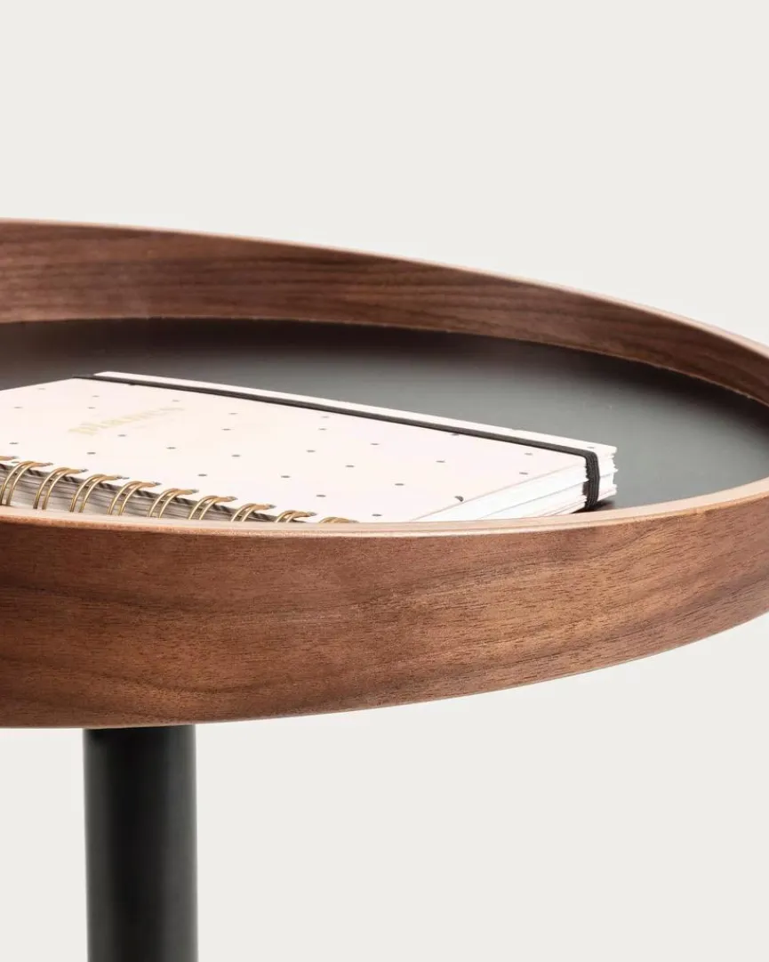 - Tischplatte aus Holzwerkstoff (MDF) in schwarz mit Rahmen in Nussbaum Furniert