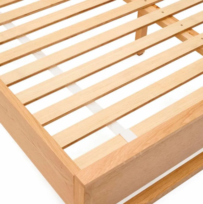 Das Bett Alguema 160×200 cm von Kave Home steht für eine Symbiose aus Modernität und Gemütlichkeit. Rustikal anmutendes Holz und konsequent strenge Geometrien sorgen hier für einen Look, der zeitgemäße Wohnlichkeit verkörpert. Kombinieren Sie das Bett Alguema 160×200 cm mit geradlinigen Holzmöbeldesigns!