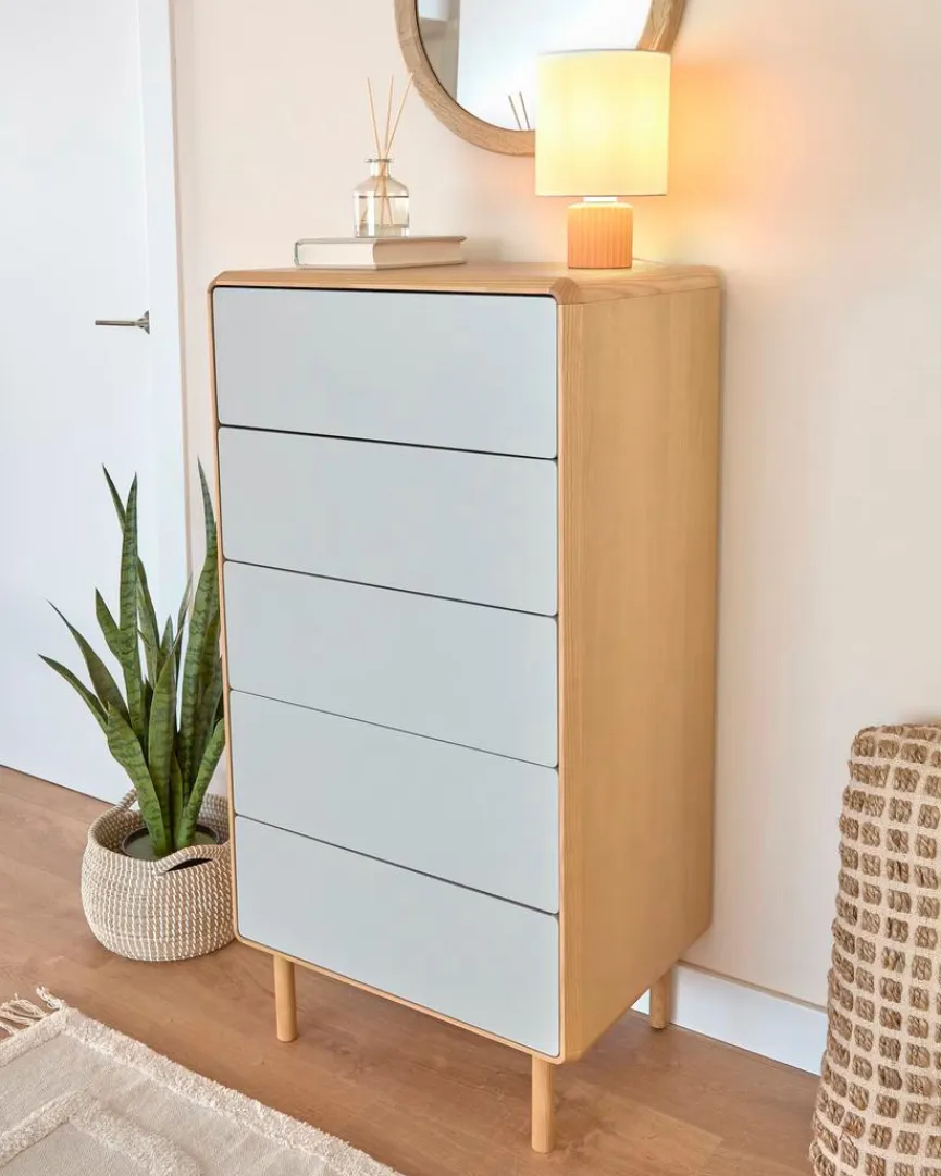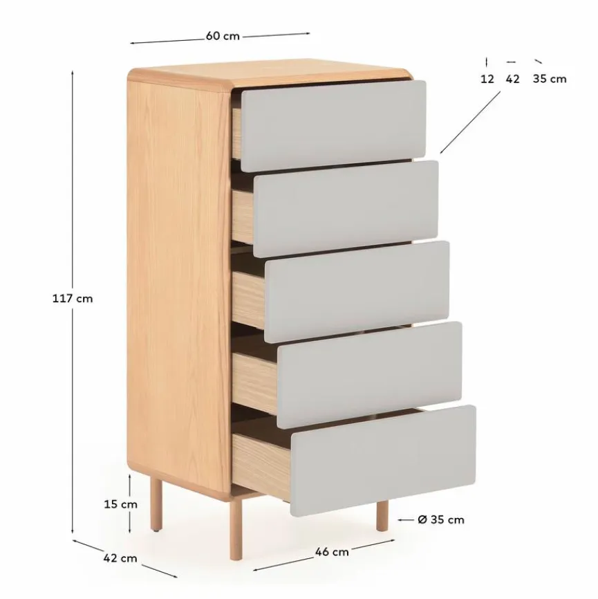 - Mit 5 Schubladen aus Holzwerkstoff mit Lack in grauweiß matt