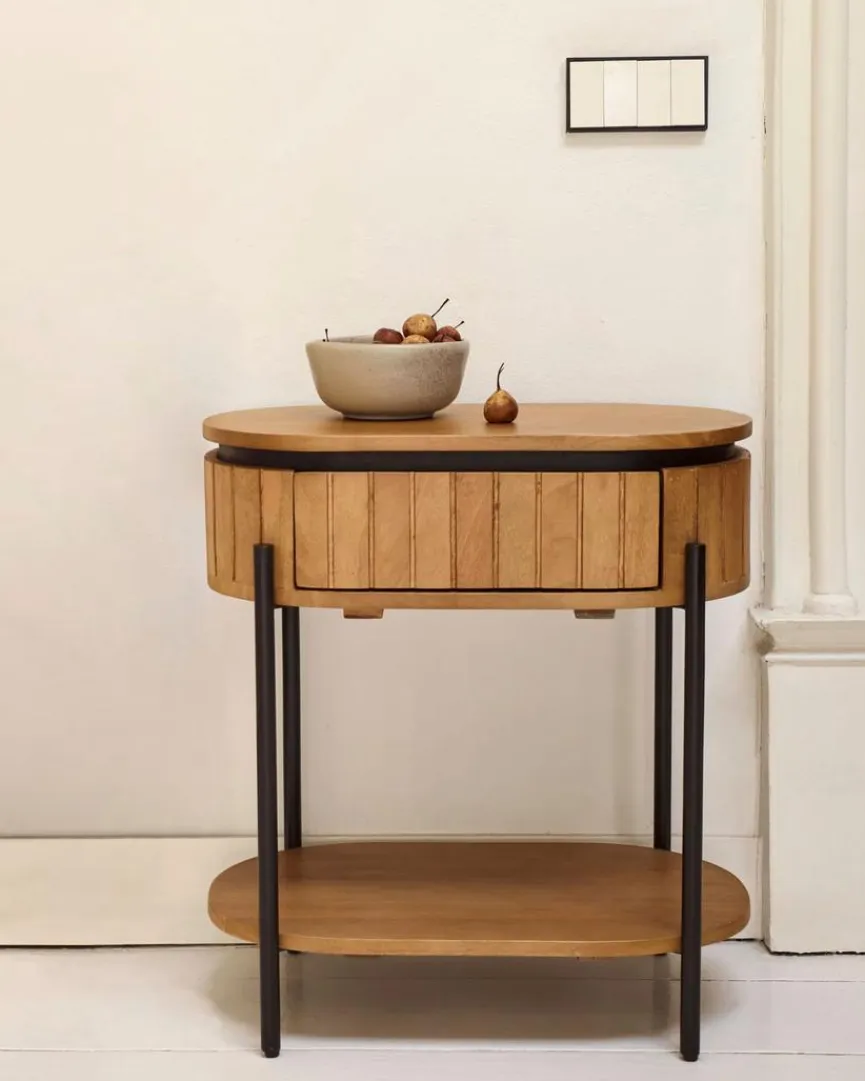 Der Nachtisch Licia von Kave Home ist eine echte Augenweide für Ihr Schlafzimmer. Abgerundete Holzelemente in Lamellenoptik verhelfen dem Möbel zu einem Äußeren, das sehr harmonisch und naturverbunden wirkt. Kombinieren Sie den Nachtisch Licia am besten mit einem Bett in einem modernen, puristisch gehaltenen Stil!